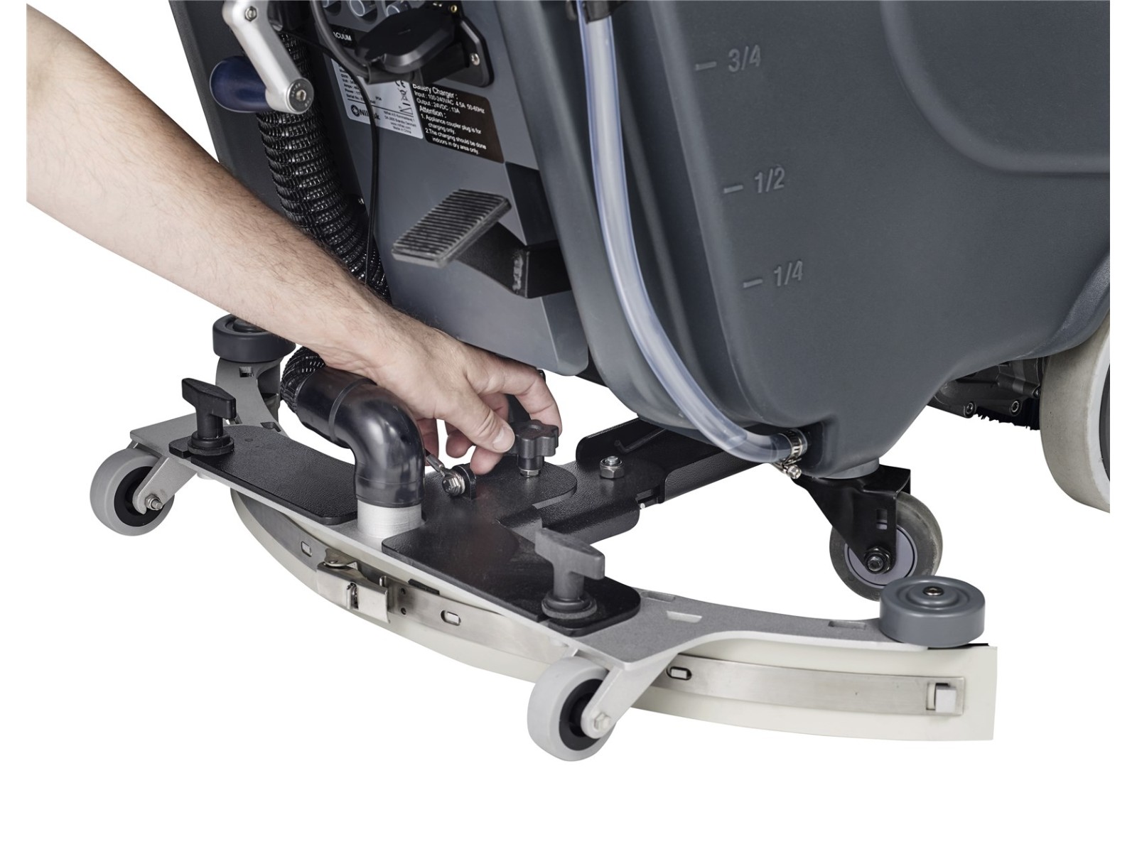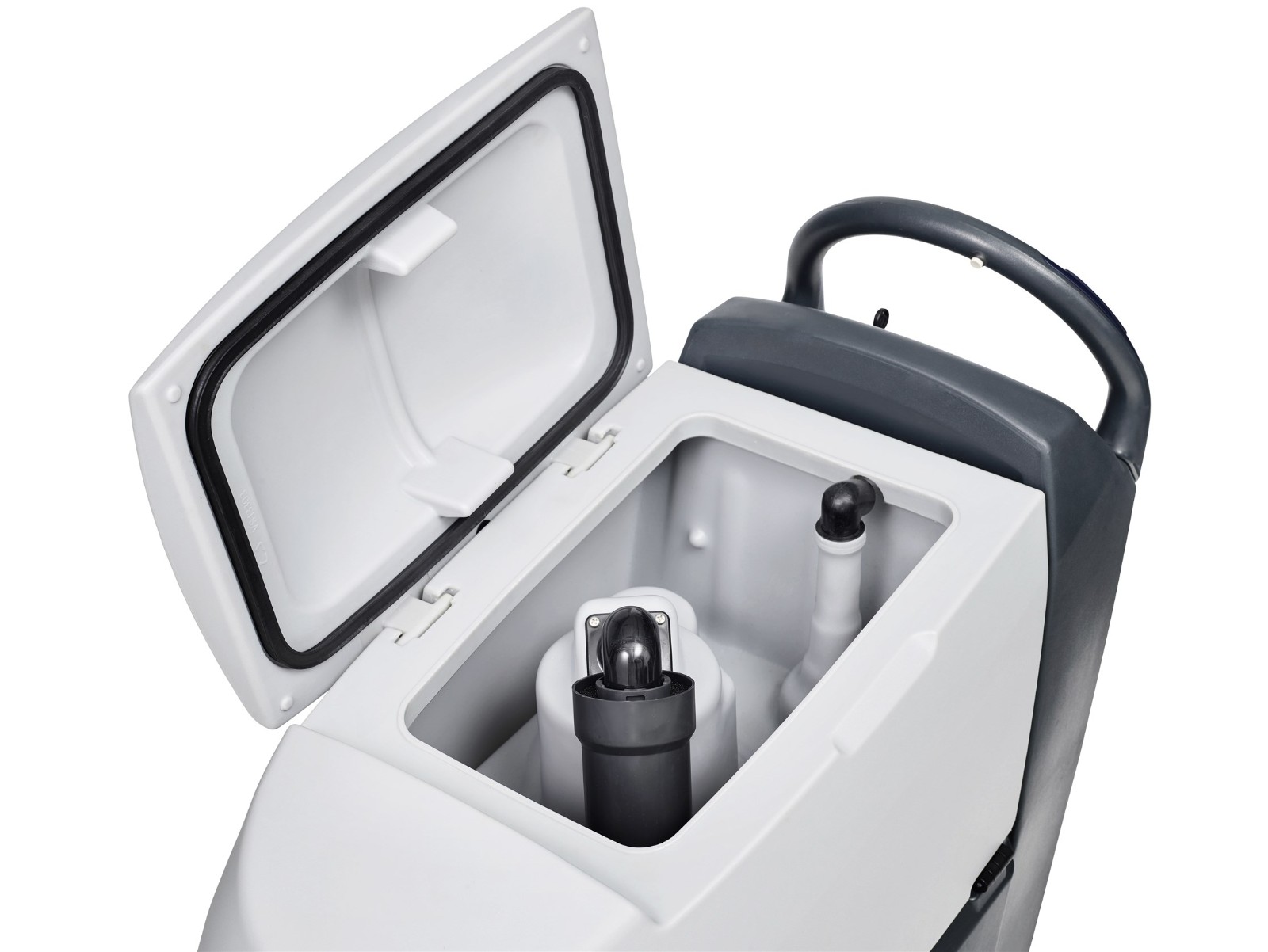 - Kippbarer Schmutzwassertank für optimalen Zugang zu Batterien und Reinigungsmittel