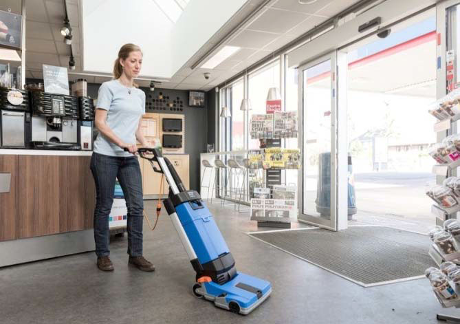 Im Vergleich zu der manuellen Reinigung mit Wischmop und Eimer, wird diese aufrechte Maschine ihre Reinigungsaufgabe schneller und effizienter erledigen.