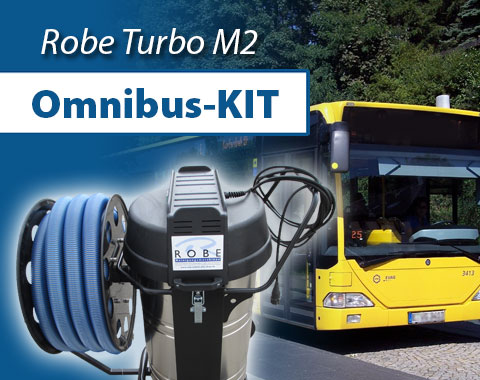 Für die Fahrzeugreinigung erhalten Sie den Robe Turbo M2 mit Schlauchtrommel und extralangem 15 m Schlauch. Zahlreiche Düsenaufsätze und weiteres Zubehör erlauben eine Busreinigung bis in die hinterste Ecke.